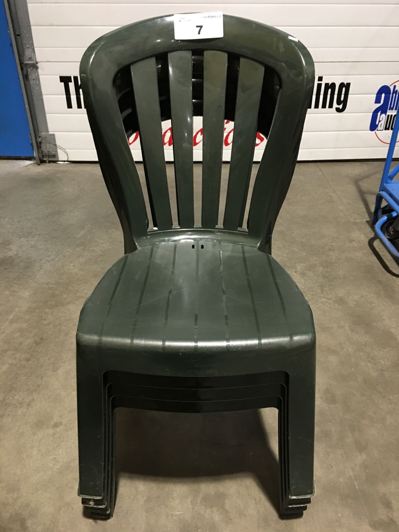 GROUP OF 4 GREEN PLASTIC OUTDOOR PATIO CHAIRS – Able Auctions